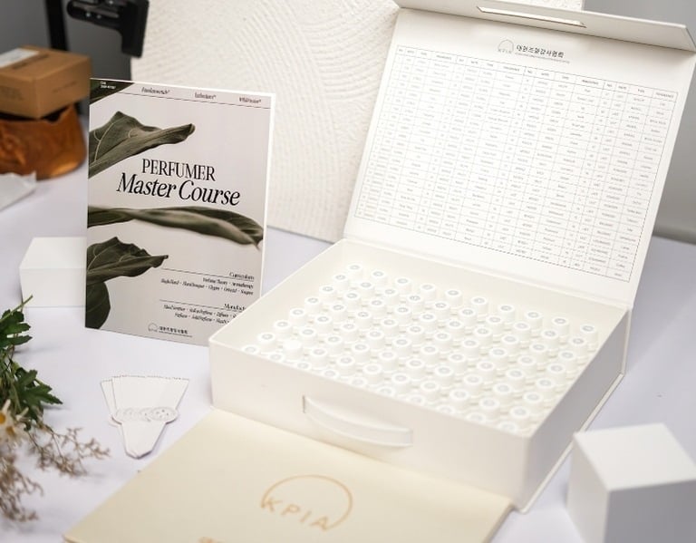 The KPIA Masterclass covers all aspects of perfumery, from its history and safety procedures to advanced smelling techniques. You'll learn about the components of fragrance, synthetic and natural ingredients, and aroma chemicals. The course includes hands-on experience with 80 scents from Korea, blending over 20 of fragrance, and creating personal and inspirational perfumes for the price of IDR 25.000.000